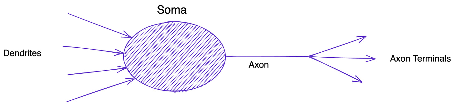 As mentioned, in “vanilla” feed-forward neural networks, a neuron is essentially an “activation function” (e.g., tanh, sigmoid or ReLU) that receives a weighted sum and a bias as an input: σ(w1*a1 + w2*a2, w3*a2….+ bias) and produces an “activation” that feeds into the next layer.