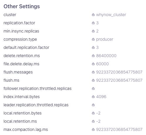 I’ve adorned Confluent’s Kafka with it’s very own `whynow_cluser` which I think best illustrates how much these event brokers do. Replication (for data resiliency), data retention (for compliance), event flushing (for performance), it’s all there: