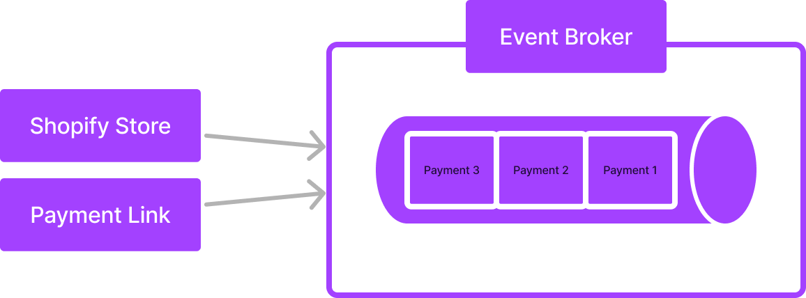 Brokers do this by organising these events into “topics” (think of them as folders stored on the broker). Par example, we could create a “payment_events” topic that records Stripe payments like the one above. Each time a new payment is made, the resulting log is sent to the topic:
